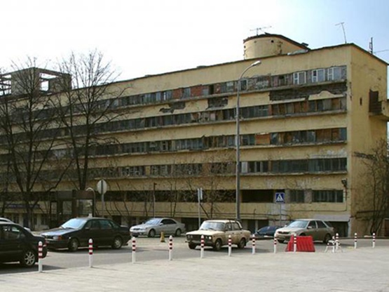 她说:“吃饭是一种公共活动,食物是在厨房工厂里准备的.。孩子们在公共托儿所。”莫伊谢-金兹伯格(Moisei Ginzburg)想表达一种建构主义理念:即“社会凝汽器”:一种激进的共产主义。