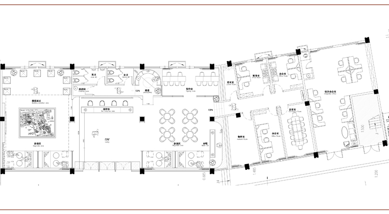 览山名苑售楼部,北仓设计,魏双览山名苑售楼部1#楼已建部分商业的一层,建筑轴线(1-A)—(2-D)。1、室内总建筑面积:487㎡,其中营销中心300㎡;一层南侧办公区187㎡;2、建筑外观建筑面积:80㎡;室外广场景观面积:350㎡。设计风格:现代轻奢。